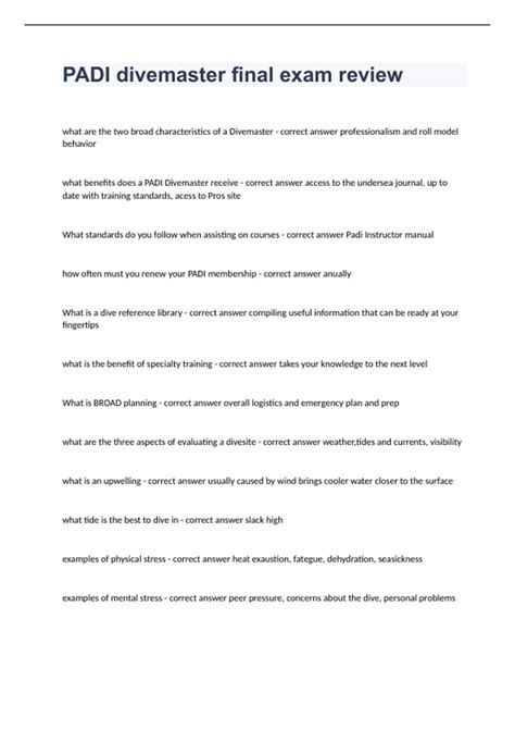 Online PDF padi divemaster final exams Reader